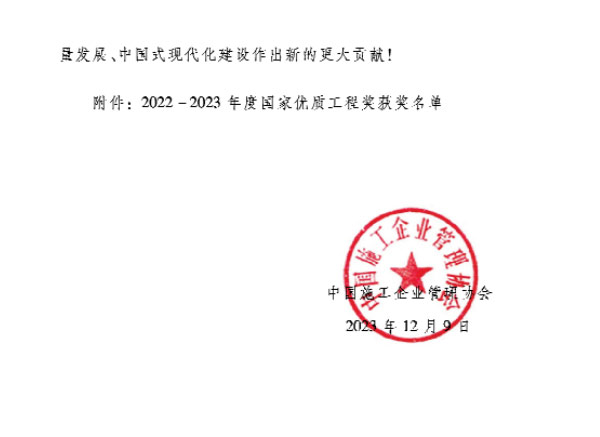 近日,中國施工企業管理協會發布2022-2023年國家優質工程獎名單,我公司參建的江海大道東延(綜藝集團東-揚子江路)工程登榜。